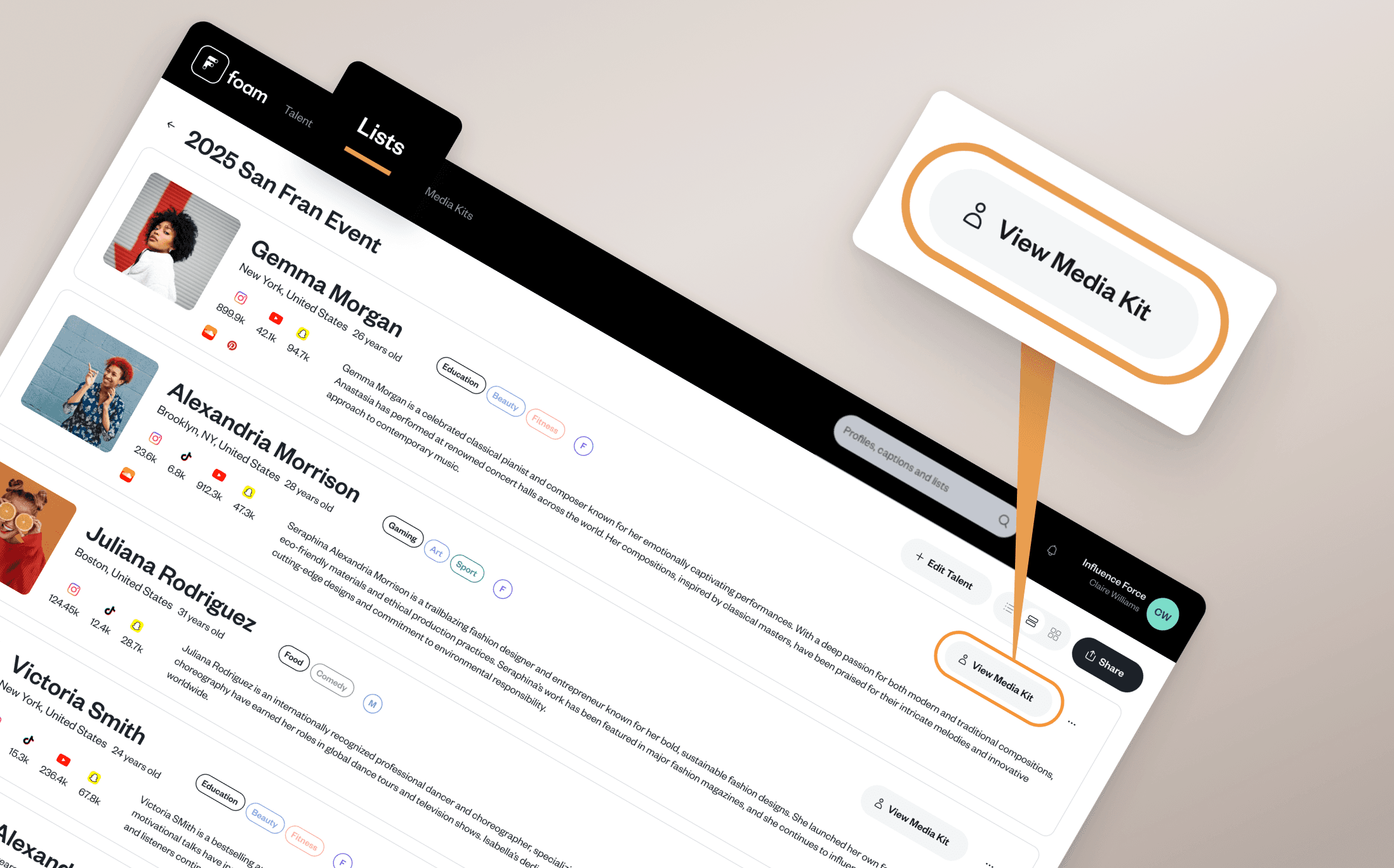 You can now showcase your talent more flexibly in Lists with automatically generated Primary Media Kits for every creator on your roster.