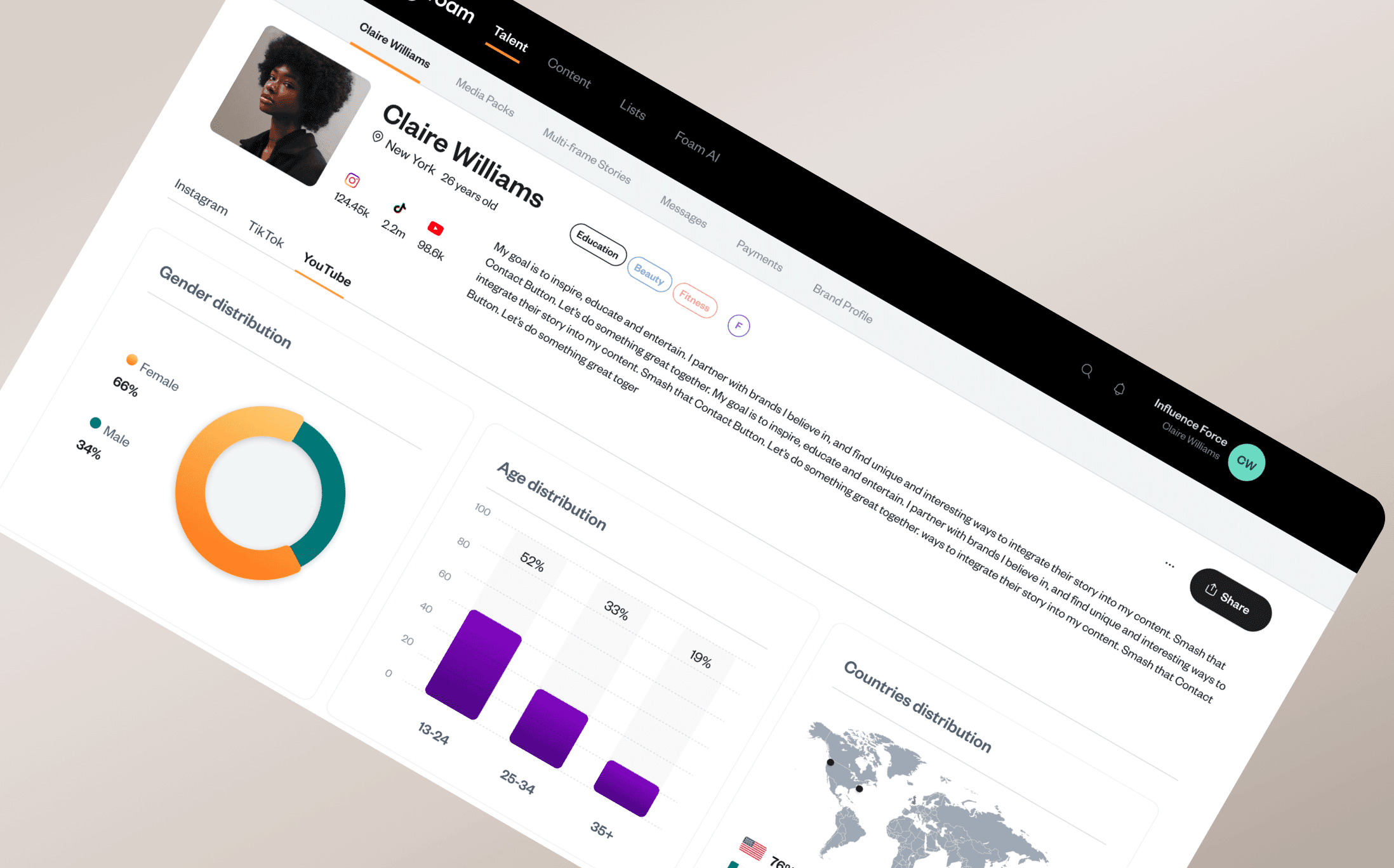 To unlock data for your Talent, simply invite them to verify their social accounts to Foam!